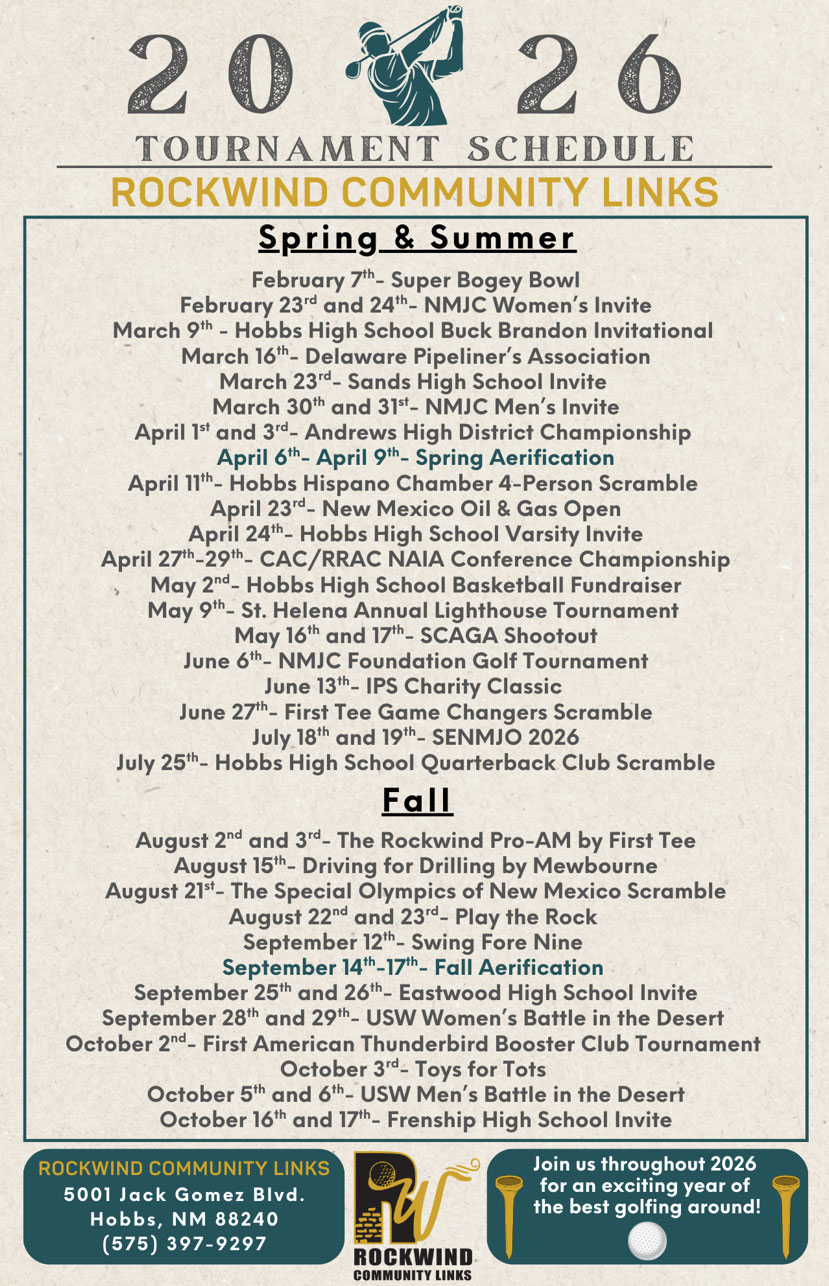 Rockwind provides the citizens of Hobbs an amenity like no other in the country. The award-winning facility includes a championship 18-hole course, a 9-hole par-3 course, a dual ended practice range and multiple short game areas for practice and learning.